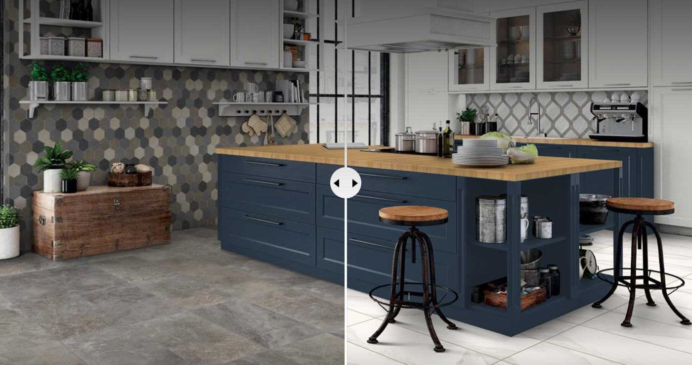 Use our photos or upload an image of your own interior space. An image mapping tool will recognize areas within an image where tile can be placed. It also allows you to manually create additional floor and/or wall areas for tile placement.